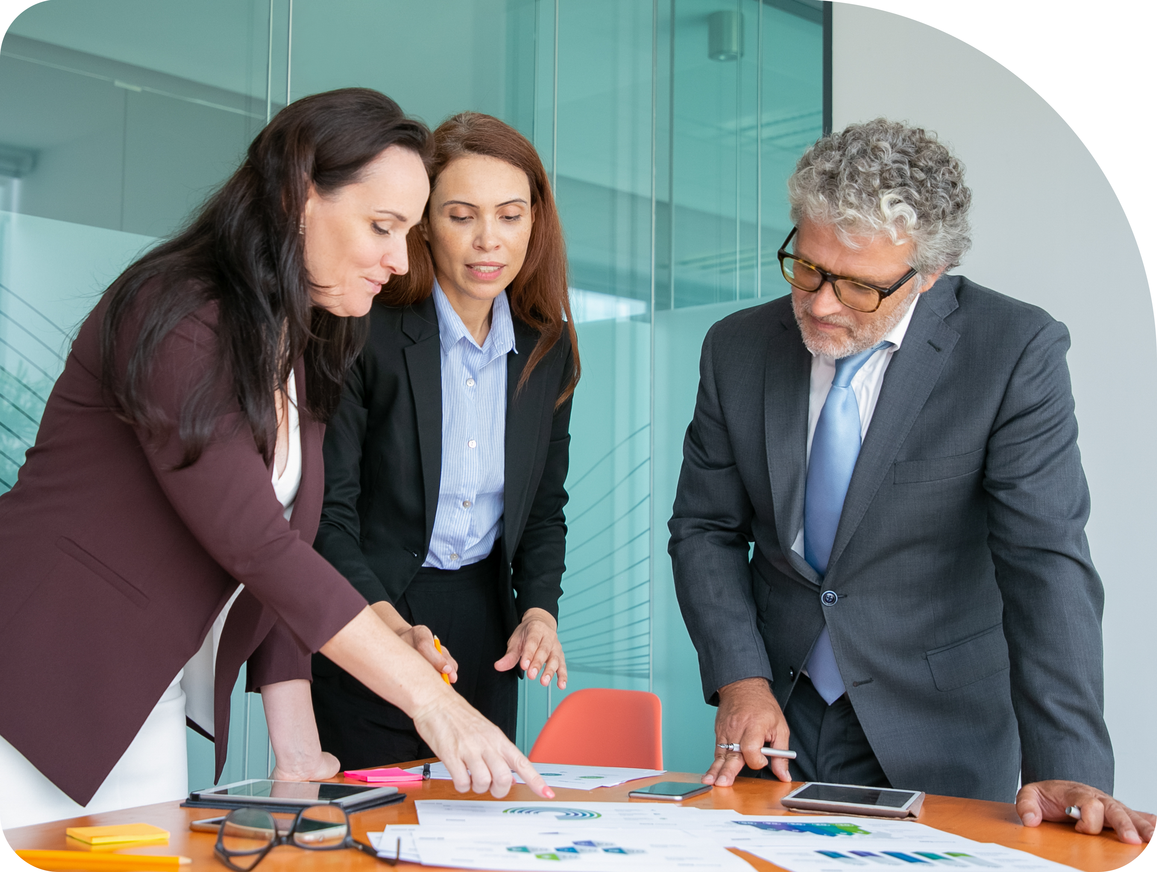 Image of three people planning around a conference table